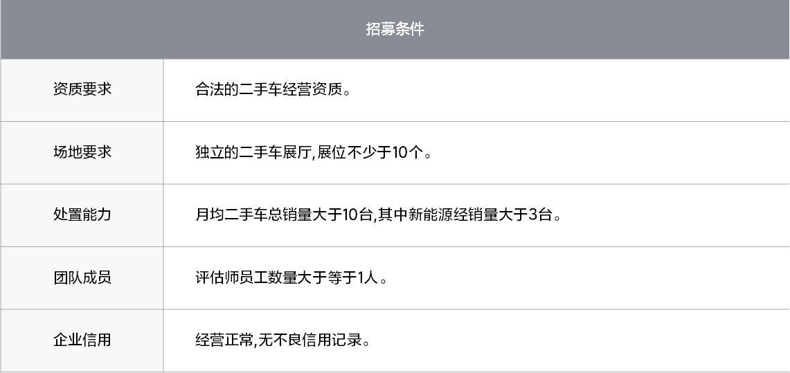 申请人需具备丰富的二手车行业经验,经营品牌在当地二手车市场有较强的影响力。